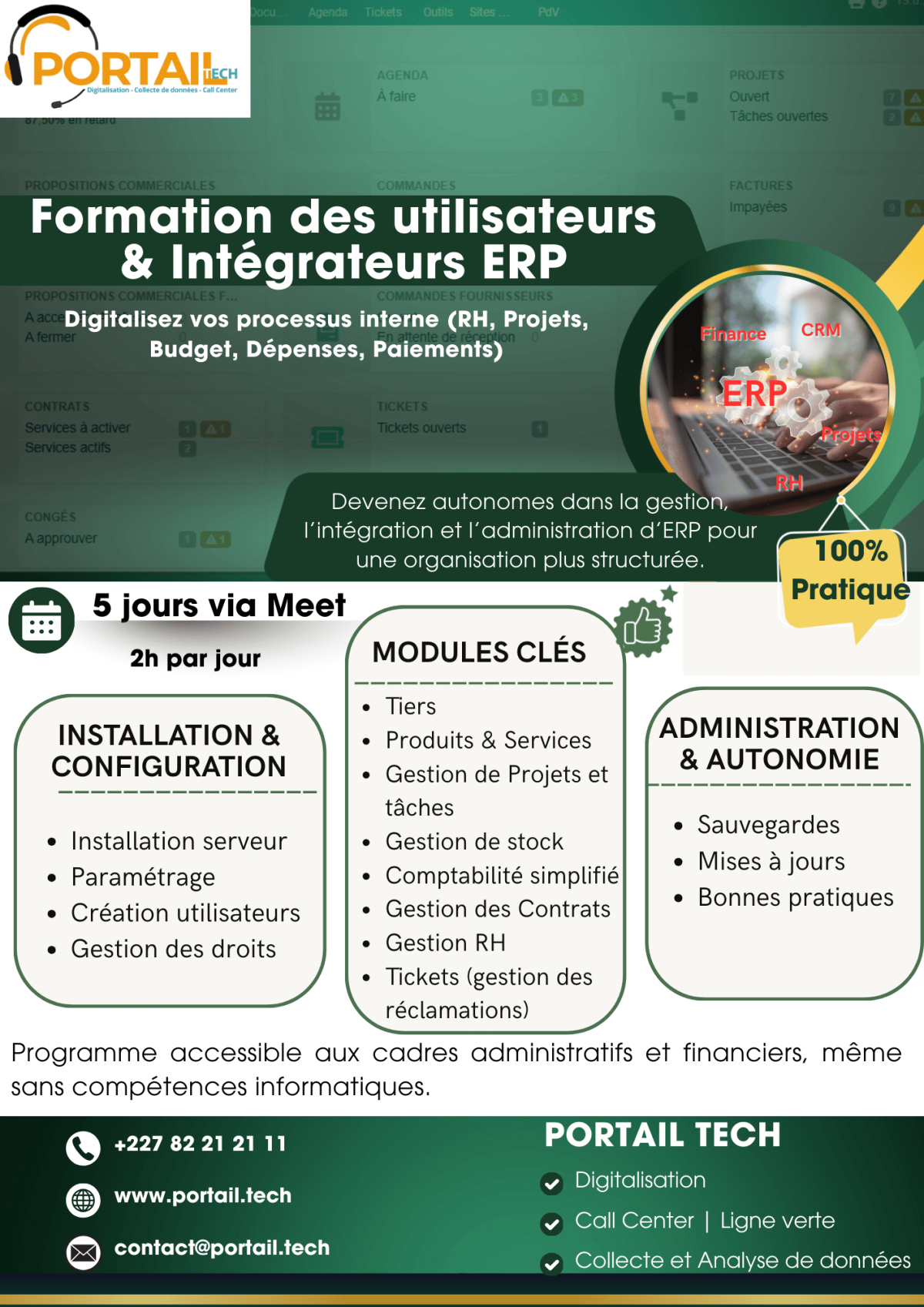 Portail Tech propose des formations professionnelles pour renforcer les compétences des organisations et des équipes dans les domaines du digital, de la gestion des données et de la communication.