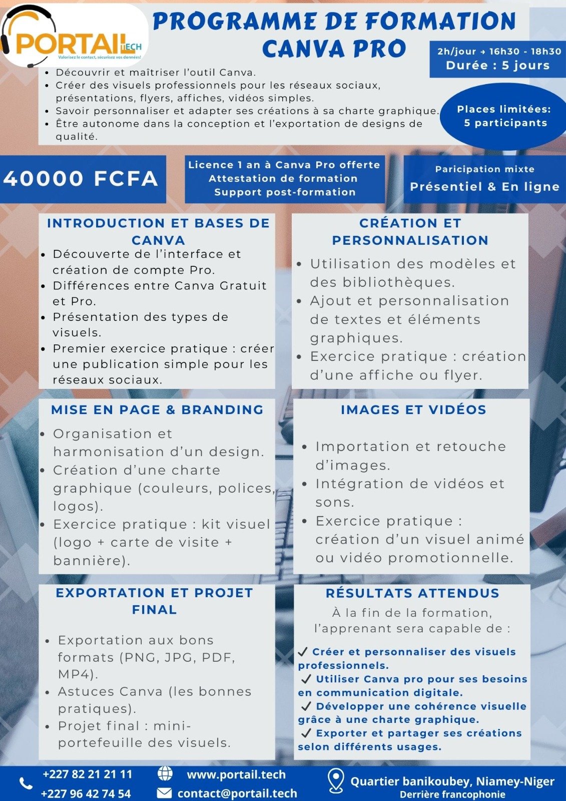 Cette formation est organisée de façon continue et se déroule par groupes de 5 participants afin de favoriser l’interactivité et un accompagnement personnalisé.